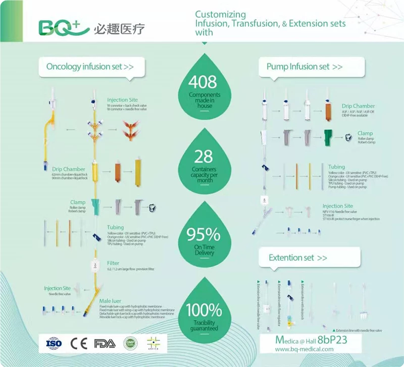 2. 組件產品 : 滴注腔,過濾器,尖峰,夾鉗和流量調節(jié)器,閥門,注射部位,魯爾鎖,蓋和蓋,ENFit連接器,旋塞閥